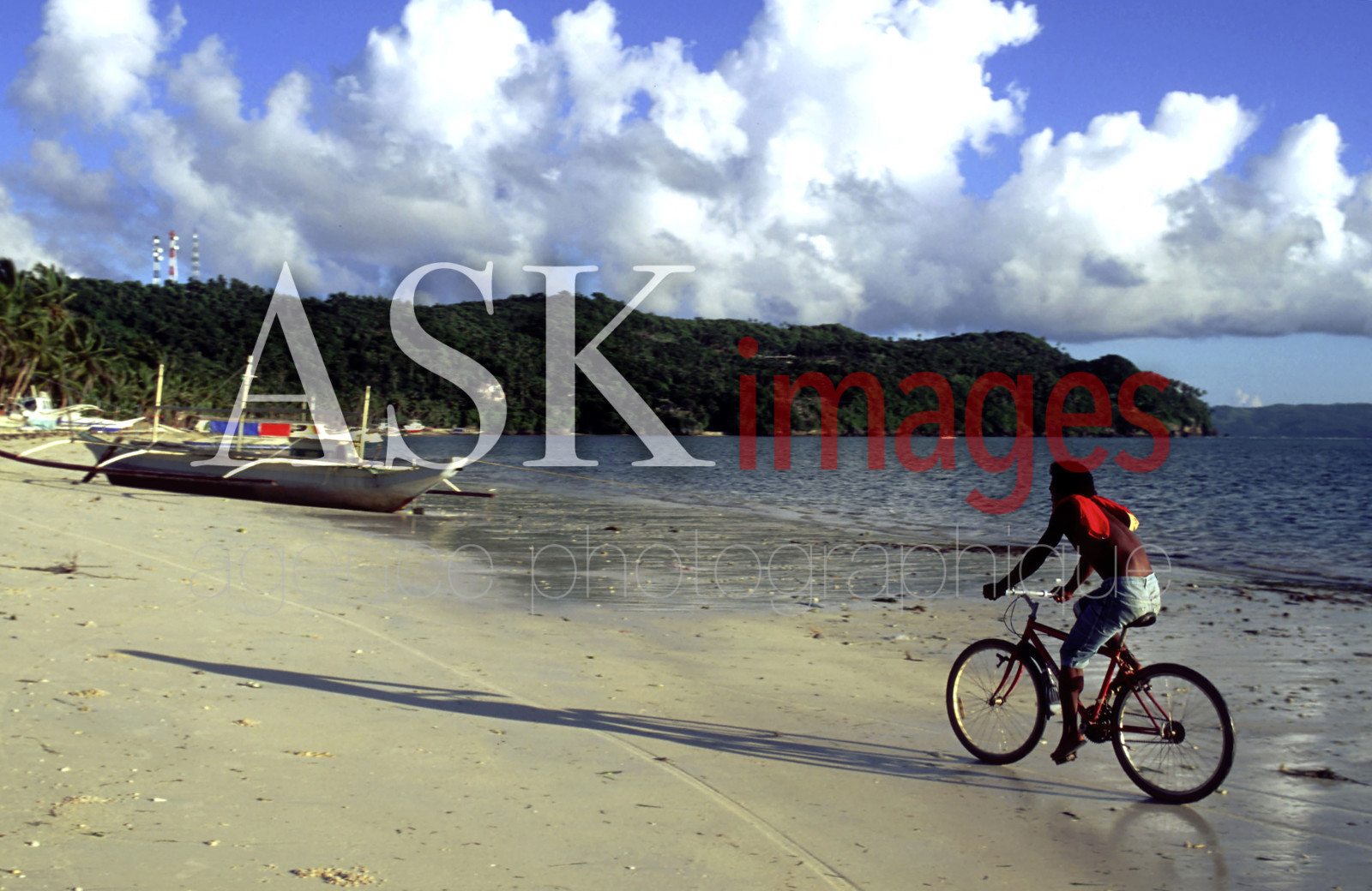 DescriptionBike along the beach, Bulabog beach, Boracay, Philippines, Boracay is a small island in the Philippines located approximately 315km south of Manila