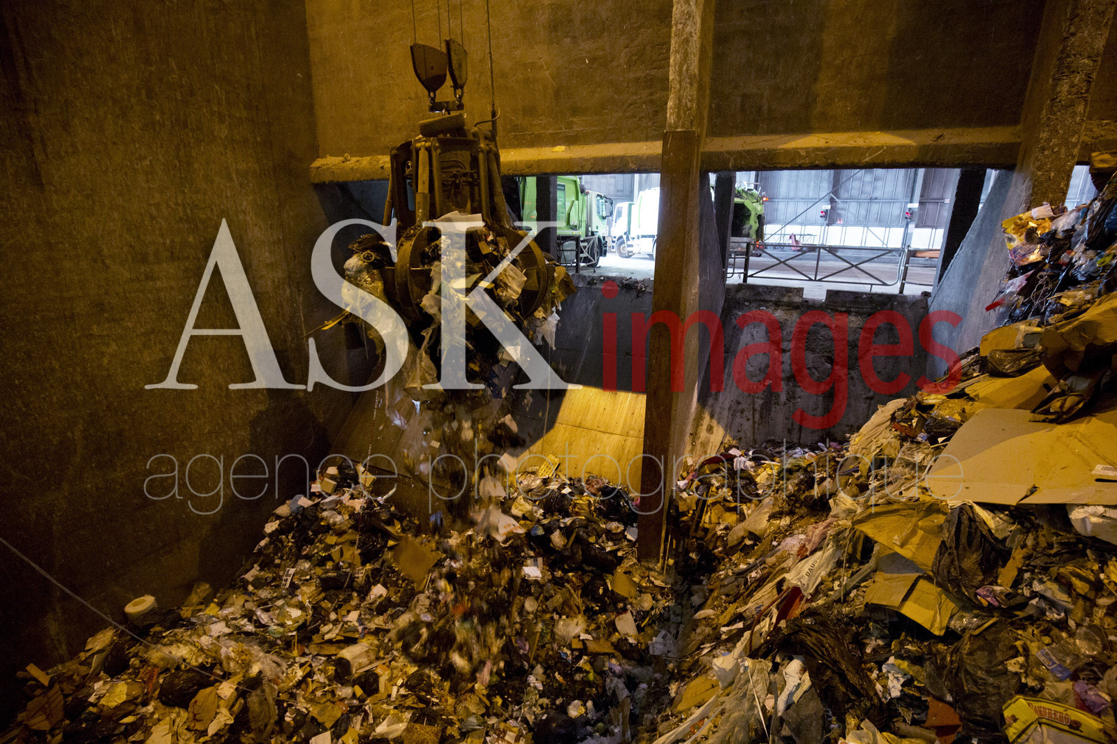 | Description | Household waste disposal service, Le Siom firm, leader of energy recovery, unloading garbage, the hook grabs waste to bring them to the hopper, door of the incinerator, Villejust, Essonne |
