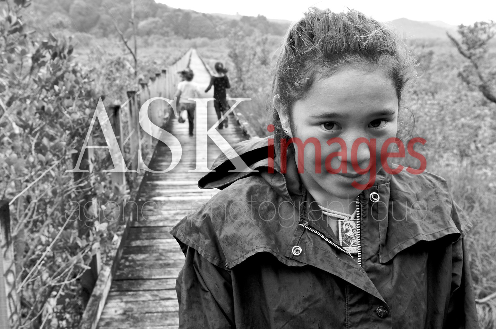 | Description | Portrait of a young Maori girl on a footbridge outside Motuti village, Northland, North Island, New Zealand |