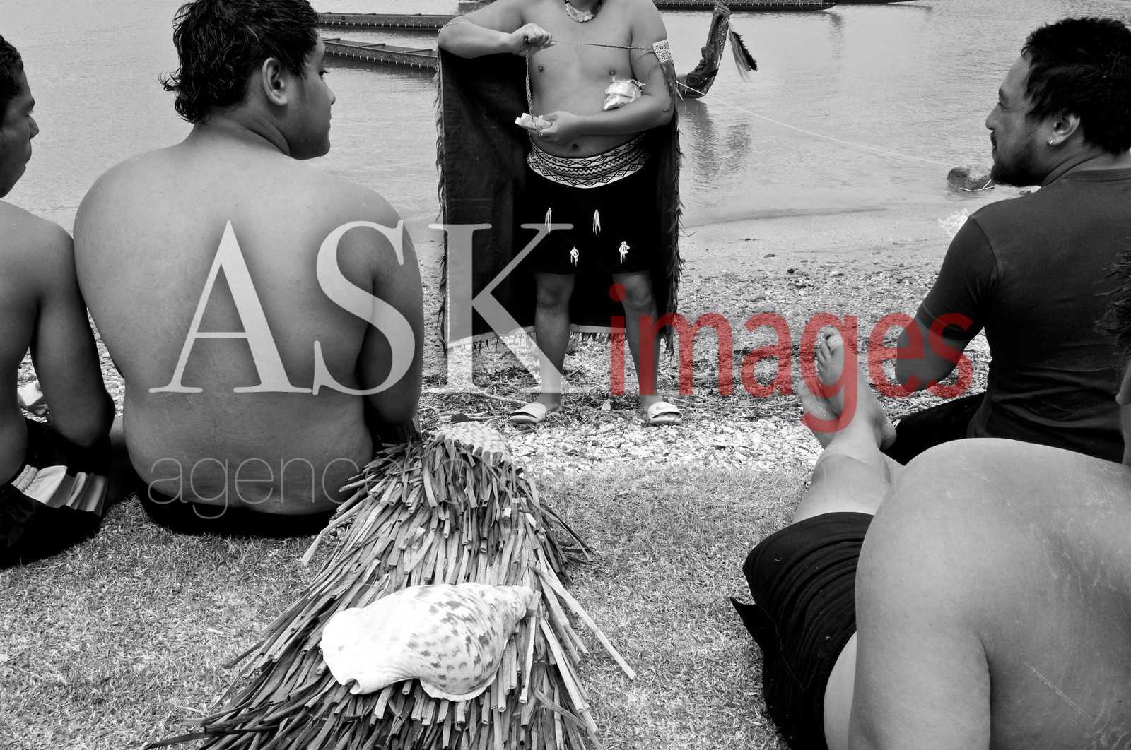 DescriptionMembers of a waka (traditional Maori canoe) crew participating in Waitangi Day annual commemorations on Waitangi Treaty Grounds, Bay of Islands, North Island, New Zealand