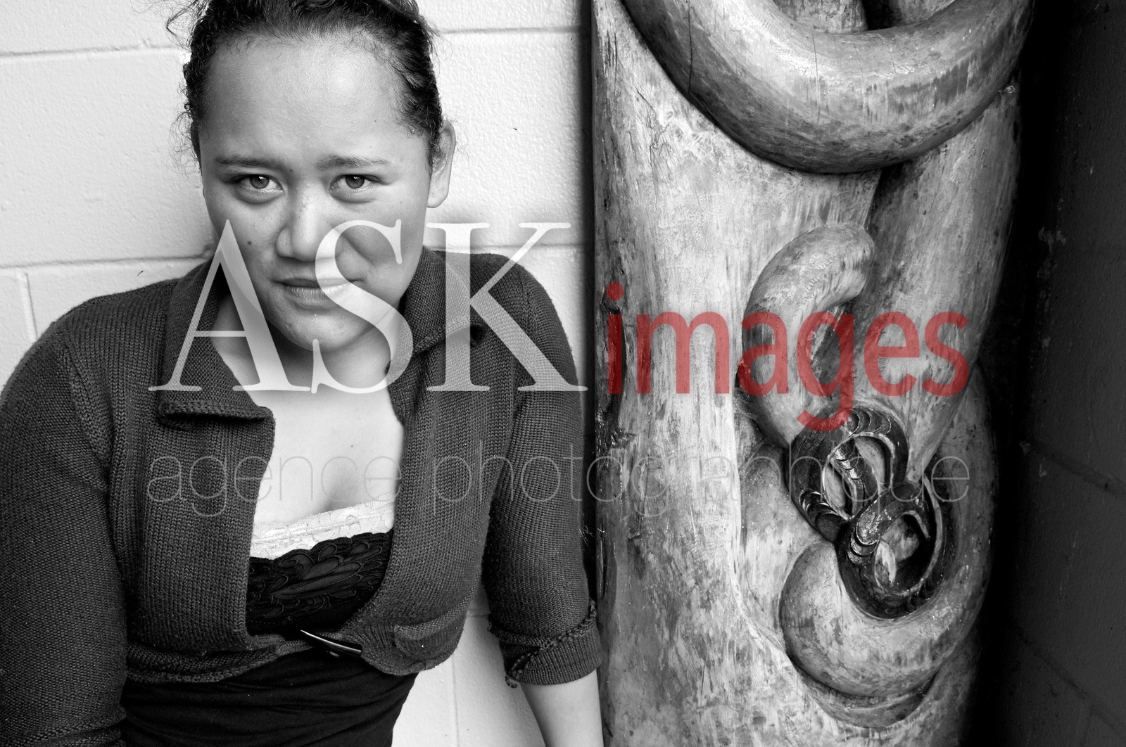 | Description | Portrait of a Maori girl at the entrance of Tamatea Marae in Motuti, Northland, North Island, New Zealand |