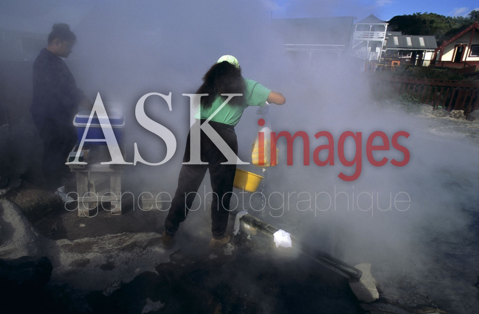 | Description | A Maori woman is cooking in hot spring, Whakarewarewa, Rotorua, North Island, New Zealand. |