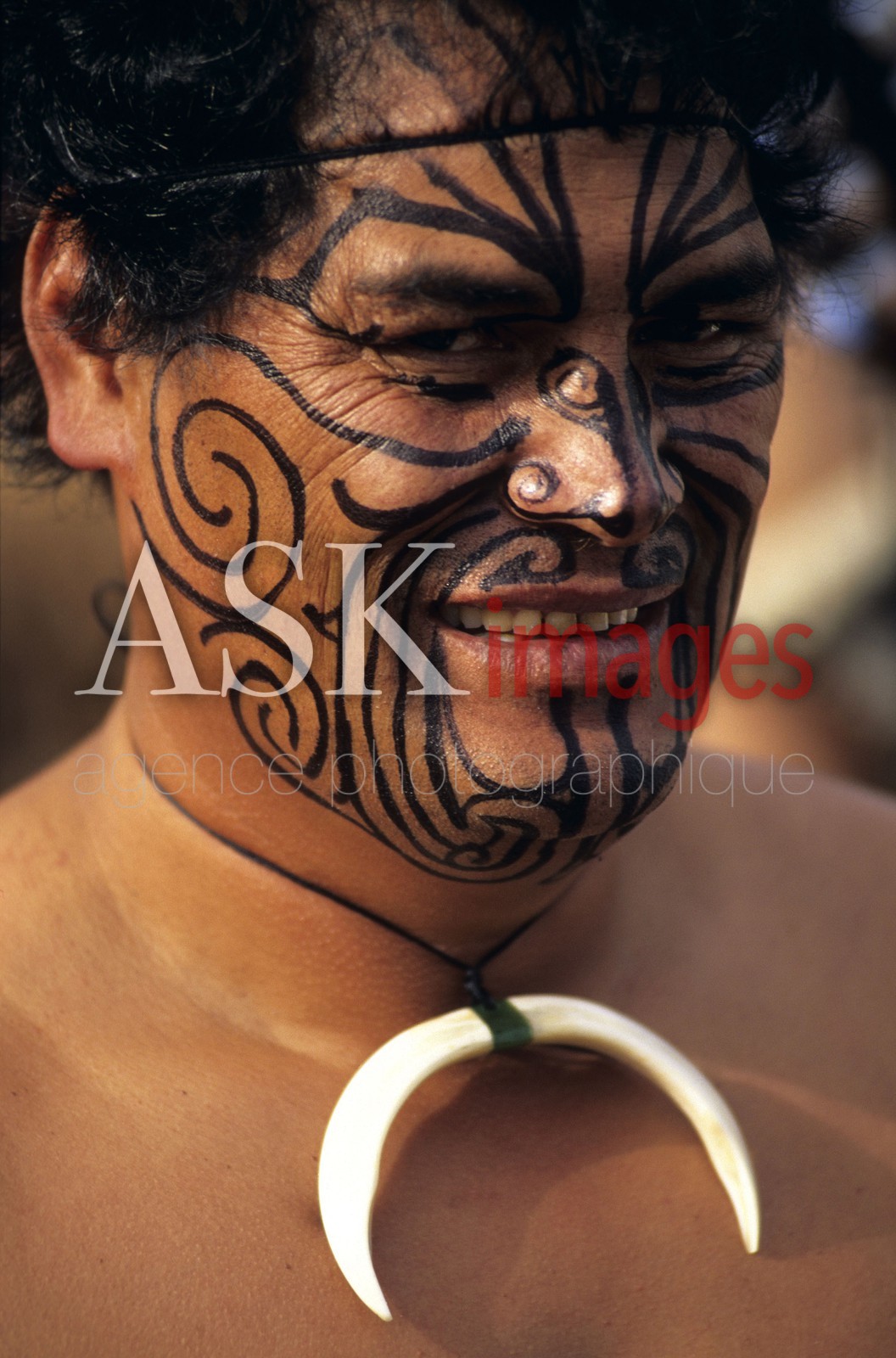 | Description | Portrait of a Maori dancer from Arawa tribe, Rotorua, North Island, New Zealand. |