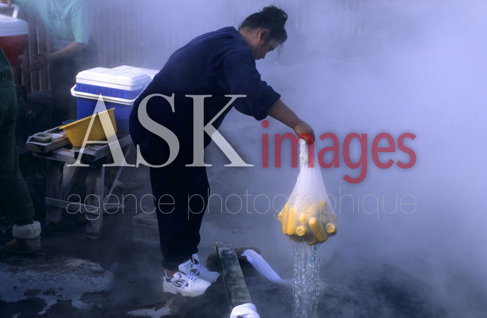| Description | A Maori woman is cooking in hot spring, Whakarewarewa, Rotorua. |