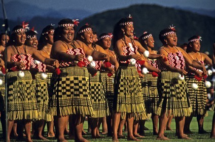 • Maori women dancers from Arawa tribe, North Island, New Zealand.