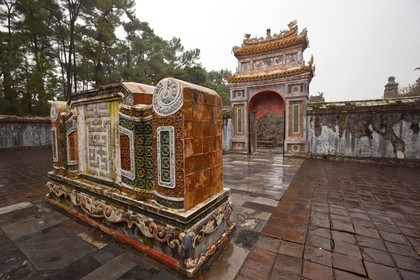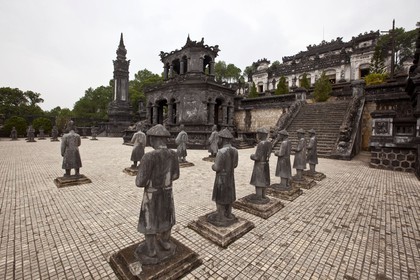 Tomb of the second last Emperor Khai Dinh, Esplanade with statues of civil and military mandarins Vietnam, Hue