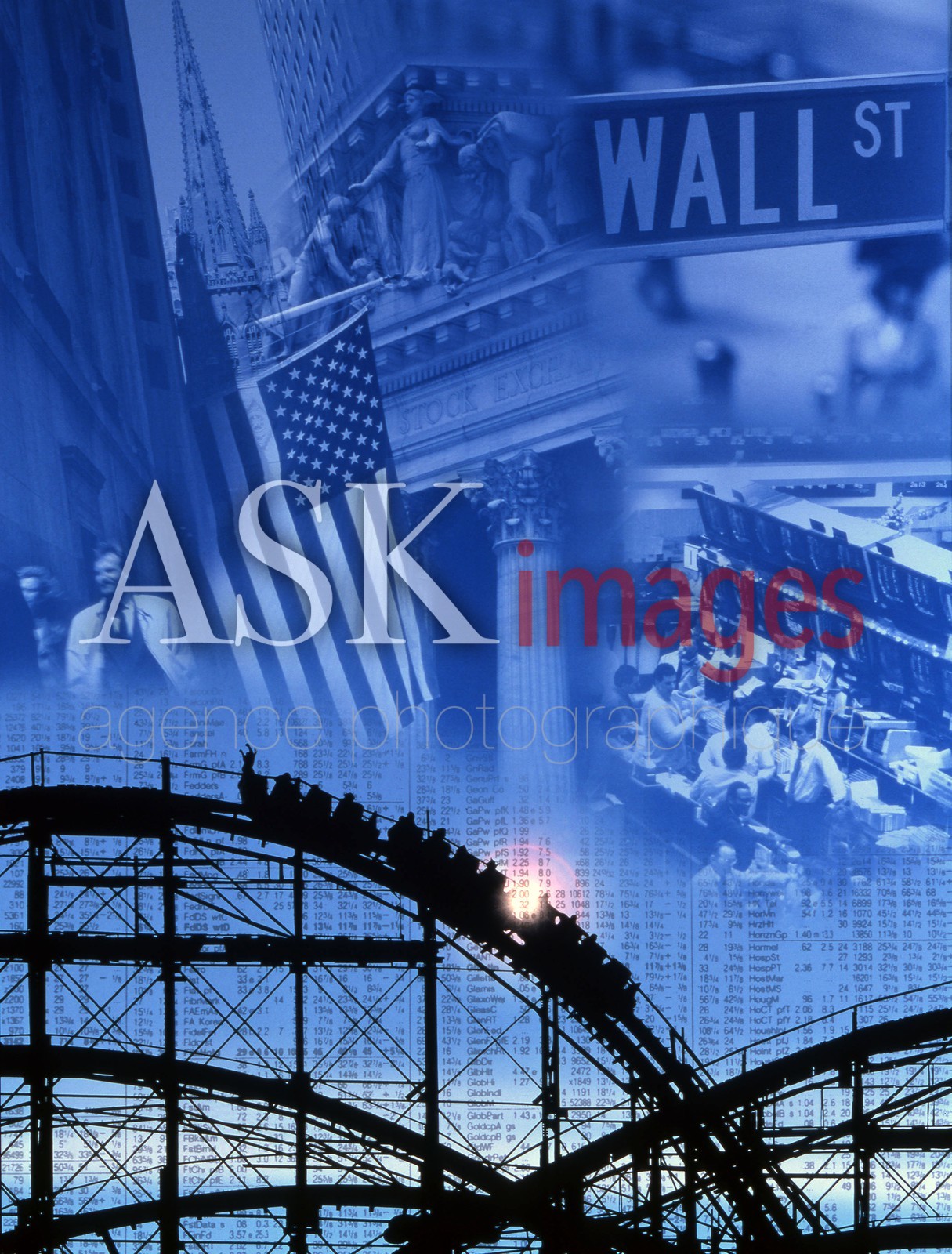 Stock Exchange, Wall Street and Roller Coaster Dow.