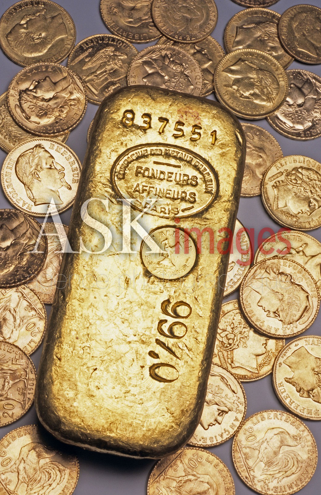 Gold bars (1 kg) and gold coins (Napoleon).