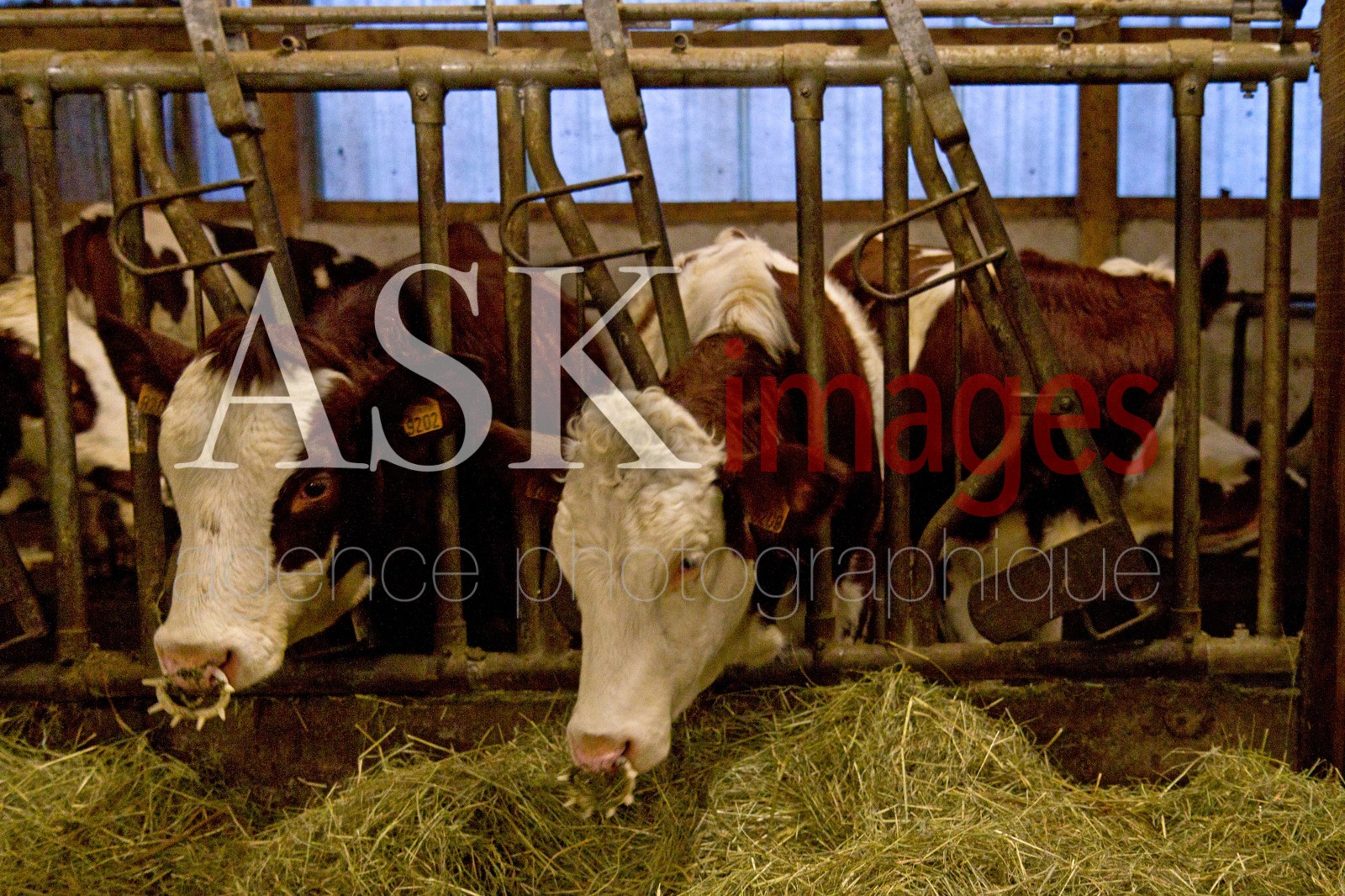 | Description | Auvergne, Puy-de-Dome, Saint Nectaire cheese, Farm and Production, Montbeliarde cows in the barn during the very cold winter. |