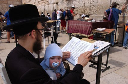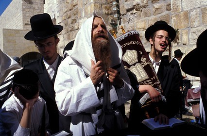 Orthodox Jews praying at the Wailing Wall, Jerusalem.