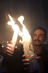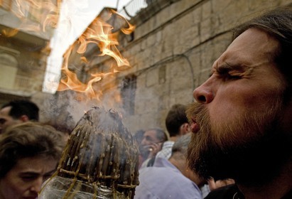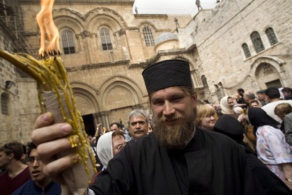 Israel, ceremonie de la Lumiere Sainte provenant du Tombeau de notre Seigneur Dieu et Sauveur Jesus Christ. *** Saturday Holy fire ceremony .The church of the Holy Sepulchre in Jerusalem.