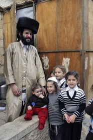 Religious family during kaparot in Mea Shearim, Jerusalem .