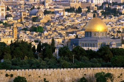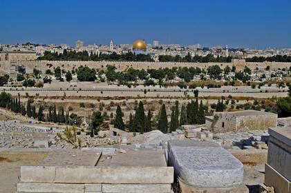 Jerusalem, cemetery on Mount of Olives and general view on old town.