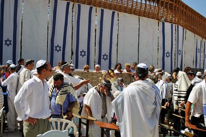 Religious jews at the kotel during the prayer of kohanim, Jeruslalem