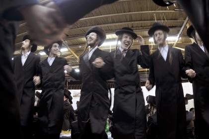 Bretzlev dancing in Mea Shearim during imba bet a shueva, Jerusalem.