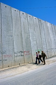 Part of the controversial Israeli security wall which separates the West Bank village of Abu Dis from east Jerusalem