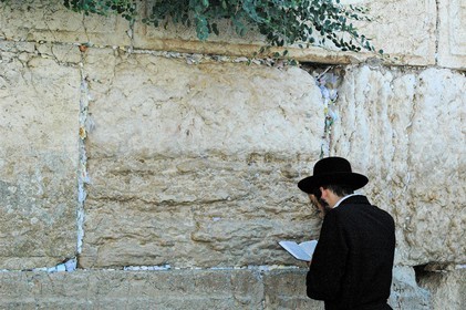 Orthodox Jew praying at the Wailing Wall, Jerusalem.