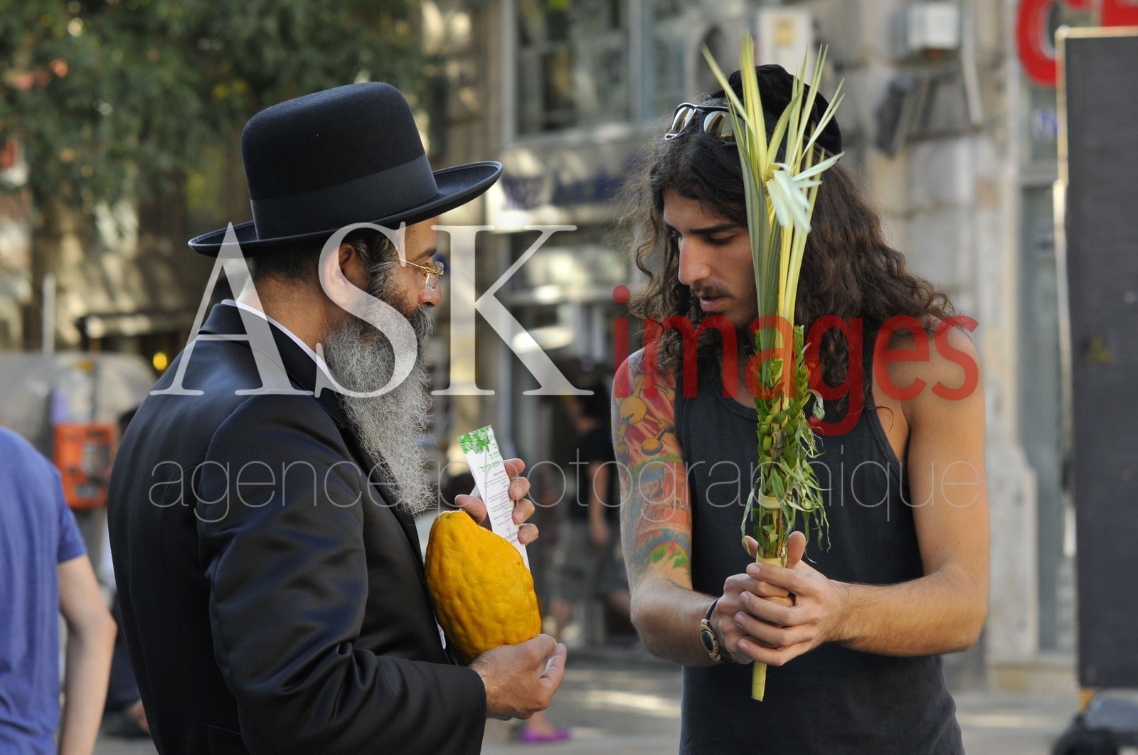 DescriptionBretzlev proposing a lulav a etrog to a young man during succot celebration, Jerusalem .