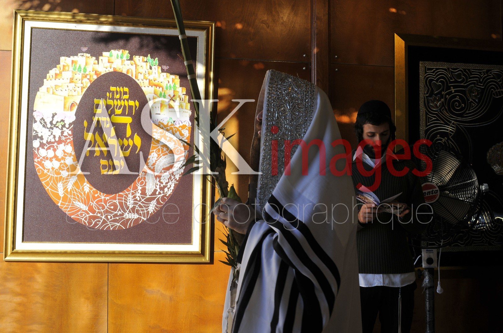 | Description | Hassidim praying in a sukkah near the kotel, Jerusalem . |