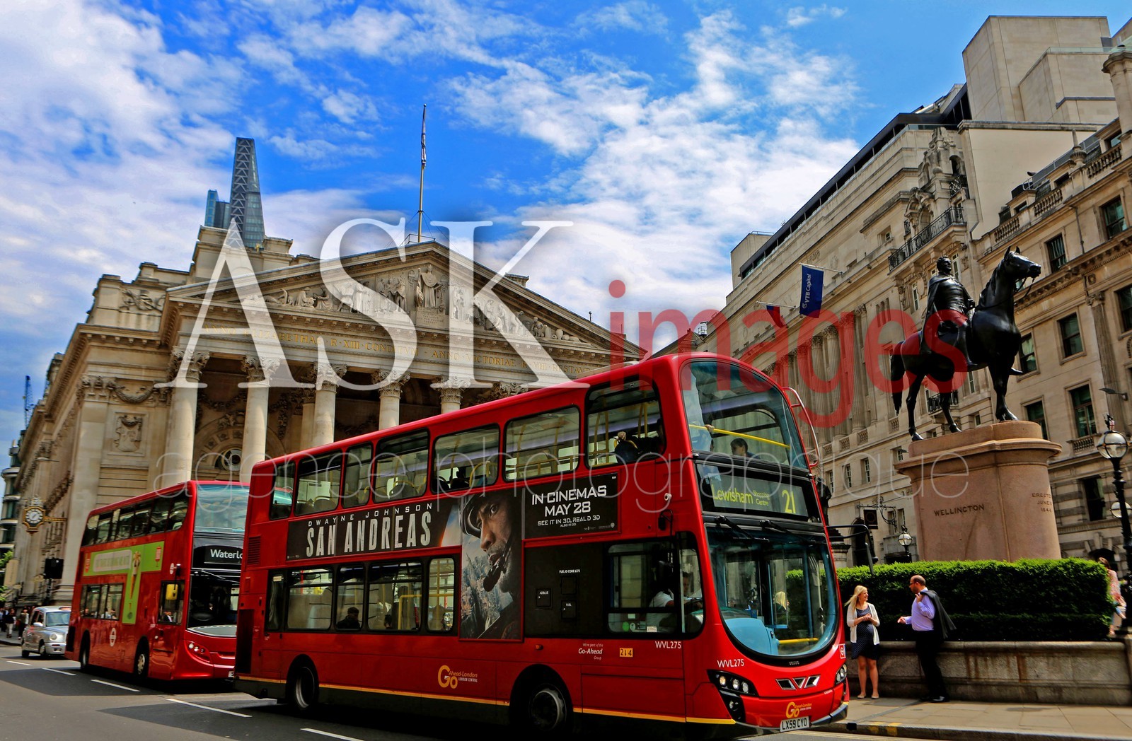 DescriptionLondon City, New London double decker and The Royal Stock Exchange.