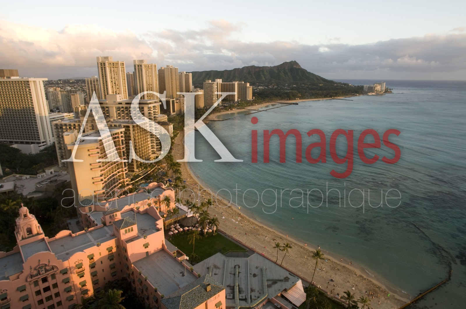 | Description | Panoramic and aerial view of Waikiki Beach. O'ahu. Honolulu. Hawaii. Waikiki is most famous for its beaches and every room is just two or three blocks away from the sea. |