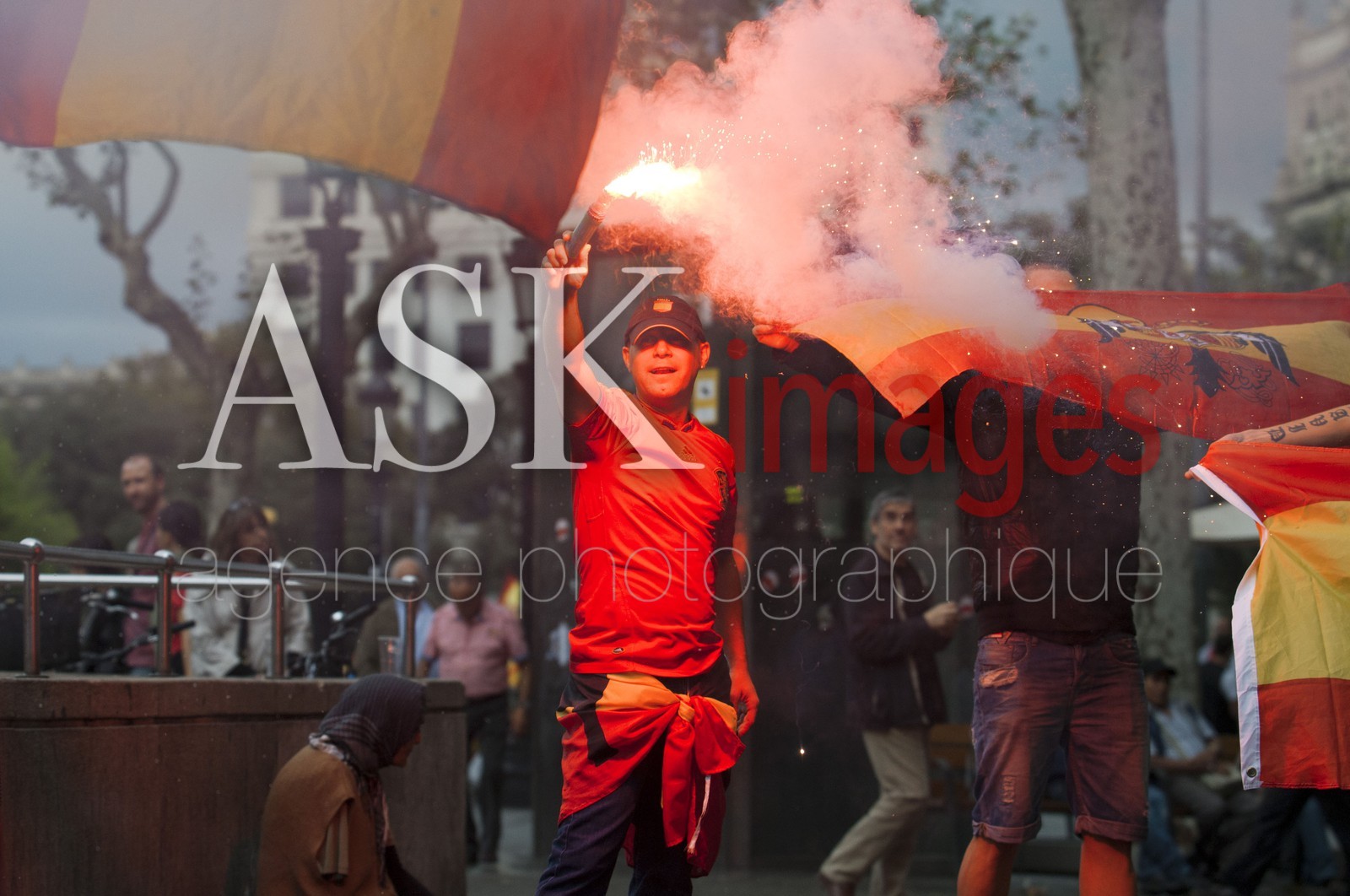 | Description | Barcelona, Spain. 12th Oct, 2014. Demonstrators doing the fascist salute during the Spanish Ultra Nationalism speech. Over 200 spanish ultra nationalist civilians has celebrated in Barcelona, the annual commemoration of October 12th as the Spanish National Day. Hispanic Day is marked by the crisis stalking Spain and the growing demand for independence by the Catalan population. Some thousands of people demonstrated for the union of the Spanish territory. |