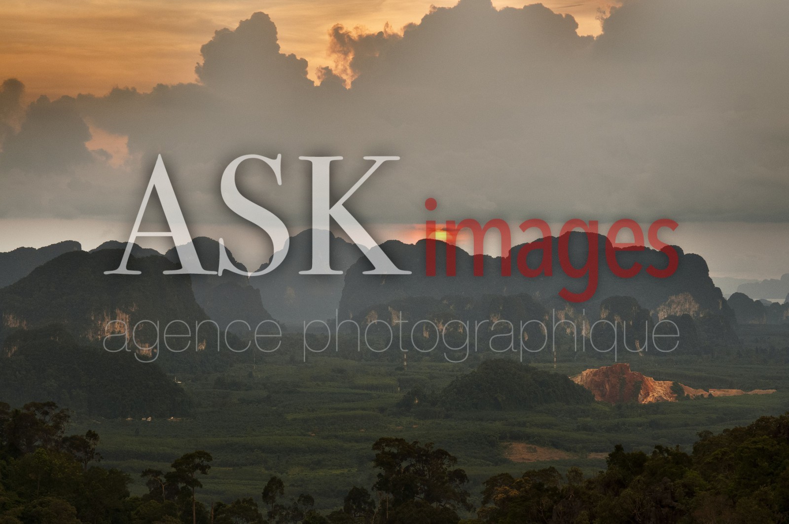 | Description | Sunset view of the beauty mountains from Buddhist shrine and statue on top of the mountain towards Tiger Cave Temple (Wat Tham Sua), Krabi, Thailand. The Tiger Cave Temple is a Buddhist temple located northeast of Krabi, Thailand. |