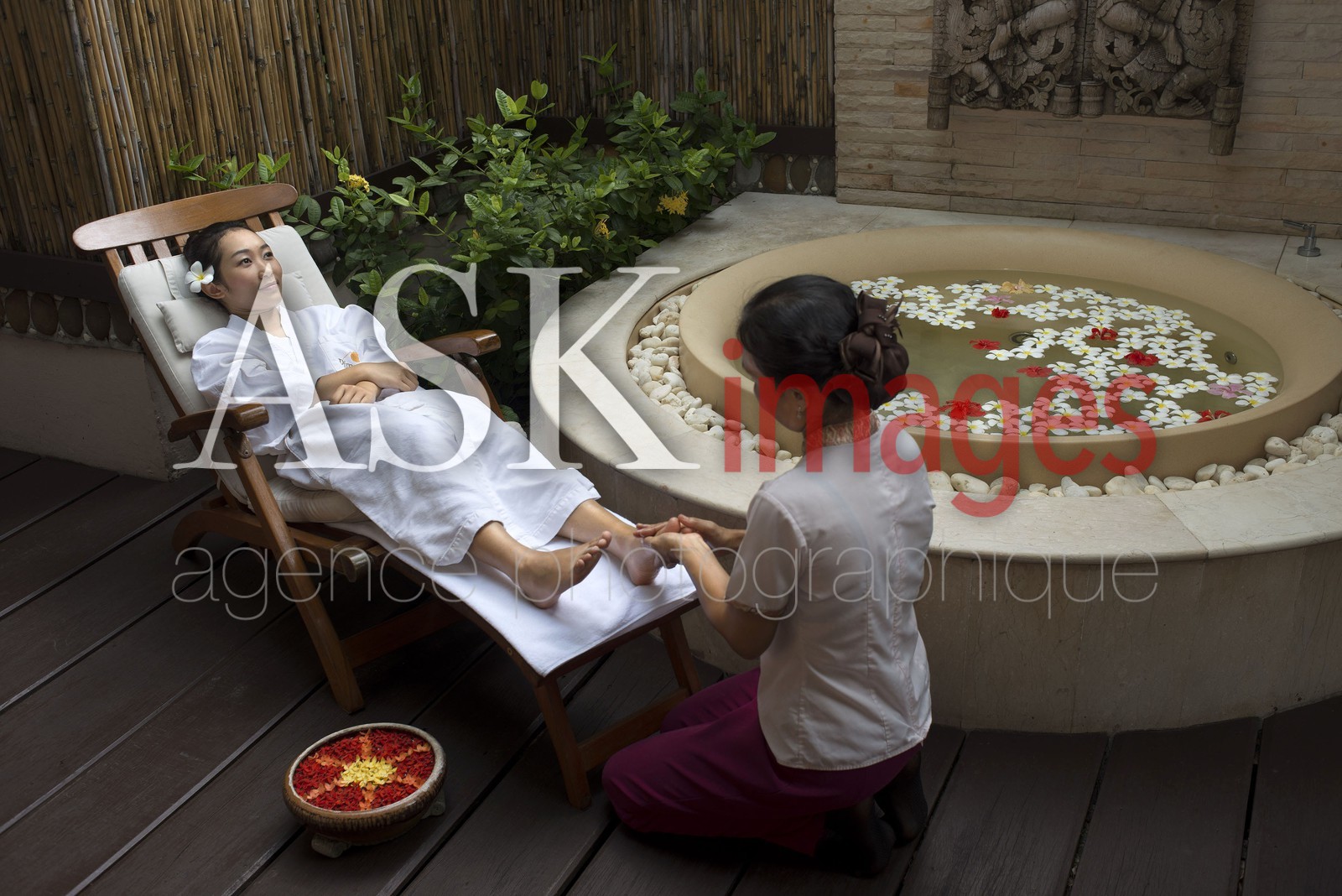 | Description | Foot massage in a spa of hotel Pimalai Resort, Kantiang Beach, Ko Lanta or Koh Lanta island, Krabi, Thailand, Asia. |