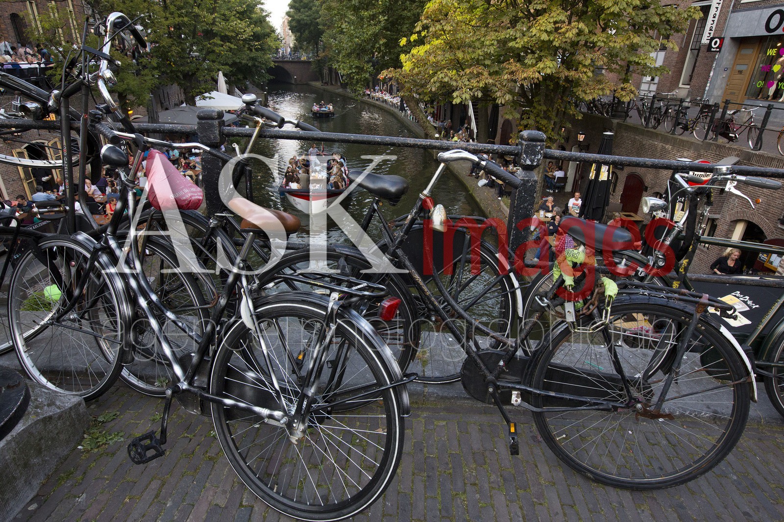 | Description | Tourist boat on canal and bicycles, Utrecht, Holland |